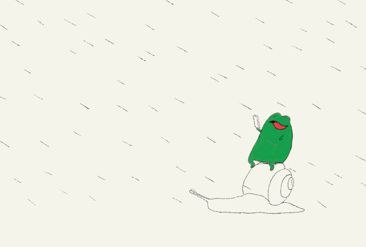 カタツムリに乗るカエル